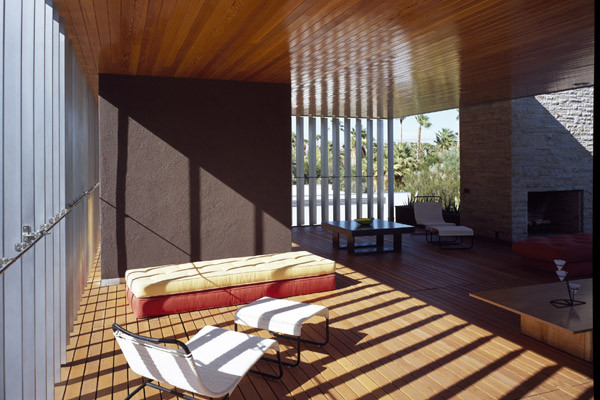 Διάφορα στοιχεία αναδεικνύουν τη μαεστρία στην κατασκευή του κτιρίου. Παρότι η πολλών τετραγωνικών βίλα διαθέτει μόνο πέντε κρεβατοκάμαρες και έξι μπάνια, οι συρόμενοι γυάλινοι τοίχοι ανοίγουν τα αίθρια του συγκροτήματος, τα οποία είναι προστατευμένα από κάθετα πτερύγια που λειτουργούν ως ασπίδα προστασίας από τις καταιγίδες της ερήμου και παράλληλα προσφέρουν σκιά κάτω από τον καυτό ήλιο. Στο κέντρο της κατοικίας βρίσκονται το σαλόνι και η τραπεζαρία εκτεινόμενα στον άξονα μεταξύ Ανατολής και Δύσης. Η τοποθέτηση των μεγαλύτερων δωματίων στο τέλος κάθε πτέρυγας προσφέρει στους ενοίκους τη δυνατότητα να κινούνται και στους εσωτερικούς και στους εξωτερικούς χώρους. Η ανατολική πτέρυγα συνδέεται με το κυρίως οίκημα μέσω μιας εσωτερικής στοάς, ενώ η κουζίνα και οι χώροι του προσωπικού είναι προσβάσιμοι μέσω ενός καλυμμένου διαδρόμου. Στη βόρεια πτέρυγα ένα ανοιχτό μονοπάτι συνδέεται με ένα εξωτερικό αίθριο το οποίο οδηγεί σε δύο υπνοδωμάτια.