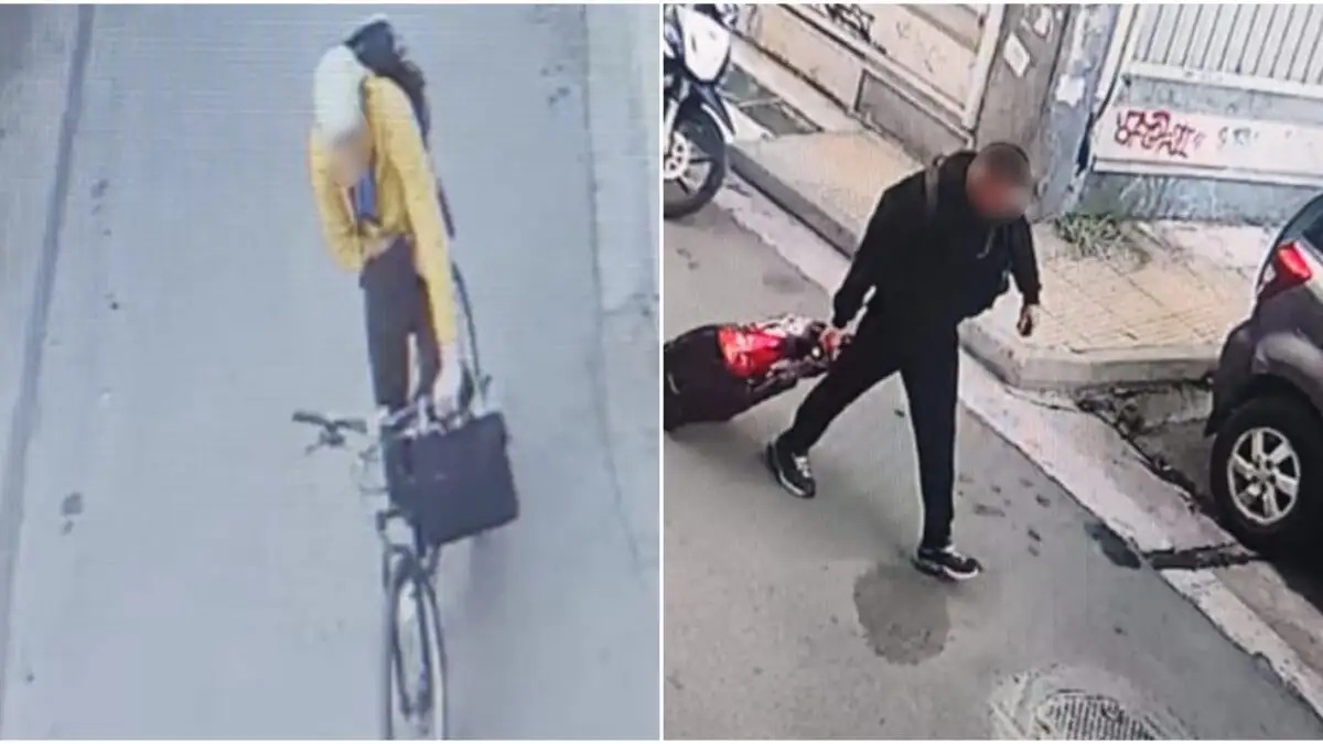 Το πρωί της 10ης Οκτωβρίου, όπως καταγράφεται σε βίντεο που δημοσίευσε το newsit.gr, ένας από τους δράστες φτάνει στην πολυκατοικία με δικό του ποδήλατο. Εκεί περιμένει τον δεύτερο εμπλεκόμενο, ο οποίος φτάνει λίγο αργότερα. Το ποδήλατο, όπως αποδείχθηκε, ήταν καθοριστικό στοιχείο για την ταυτοποίησή τους, καθώς ανήκε στους ίδιους.