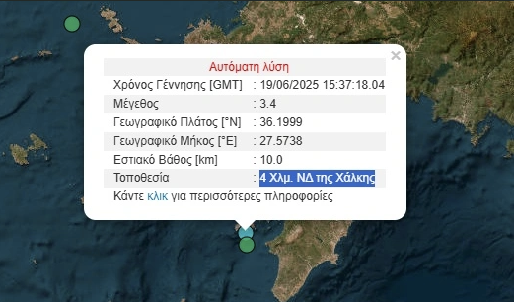 Σεισμός σημειώθηκε στις 18:37 το απόγευμα της Πέμπτης (19/06), προκαλώντας ανησυχία στους κατοίκους της Ρόδου και των γύρω περιοχών.