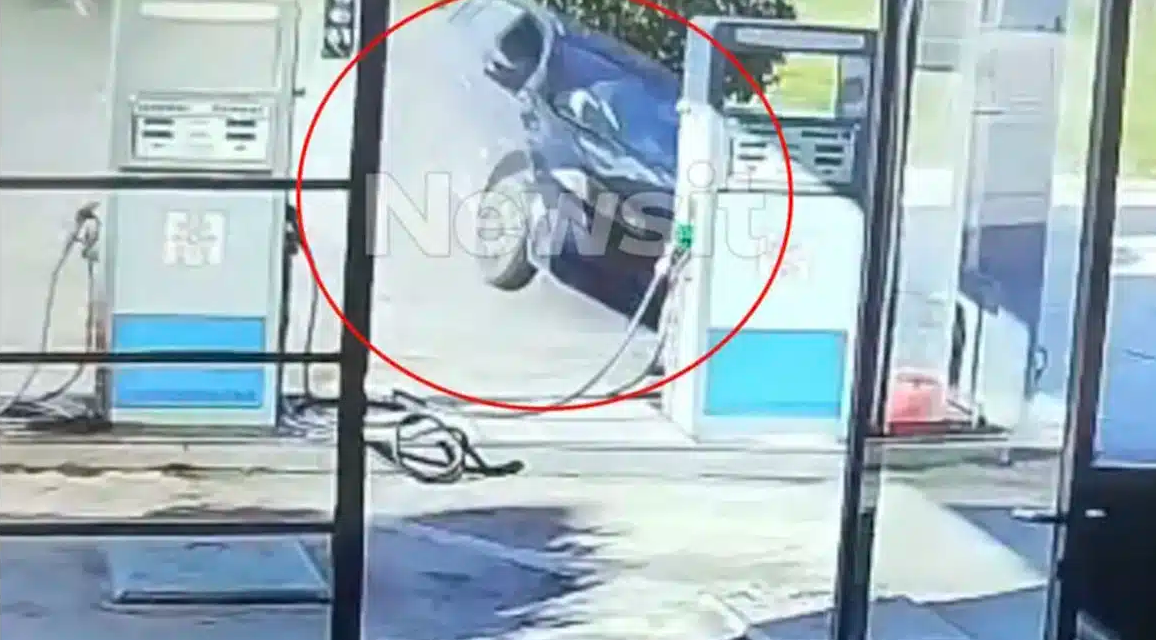 Όπως φαίνεται και στο οπτικό υλικό που εξασφαλίσαμε το αυτοκίνητο κινούνταν με μεγάλη ταχύτητα, όταν ο οδηγός του έχασε το έλεγχο, μπήκε μέσα σε ένα βενζινάδικό, πέρασε δίπλα από την αντλία και στην συνέχεια «προσγειώθηκε» στην αυλή ενός διπλανού σπιτιού.