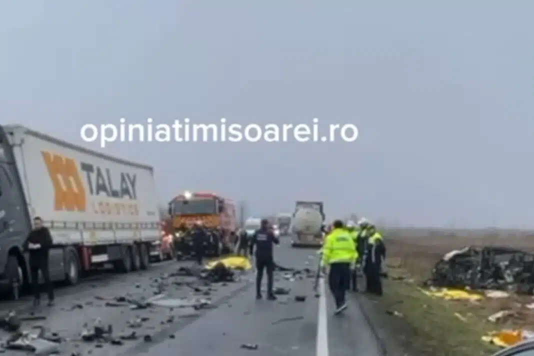 Σύμφωνα με τα στοιχεία που συγκέντρωσαν οι ρουμανικές αρχές, ένα μικρό λεωφορείο που οδηγούσε 29χρονος άνδρας και κινούνταν από τον δήμο Καρανσέμπες προς το Λουγκόι, επιχείρησε προσπέραση προπορευόμενου οχήματος.