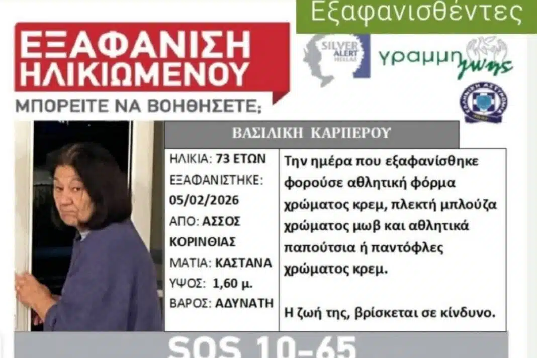 Η άτυχη 73χρονη είχε εξαφανιστεί από τις 5 Φεβρουαρίου και η ζωή της, όπως αναφερόταν στο Silver Alert που είχε εκδοθεί, βρισκόταν σε κίνδυνο.