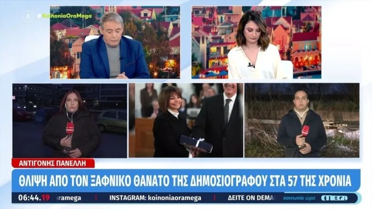 Ο δημοσιογράφος και παρουσιαστής, αναφέρθηκε στον θάνατο της Αντιγόνης Πανέλλη, η οποία έφυγε από τη ζωή σε ηλικία 57 ετών, με το τραγικό γεγονός να συγκλονίζει τον δημοσιογραφικό και όχι μόνο κόσμο.