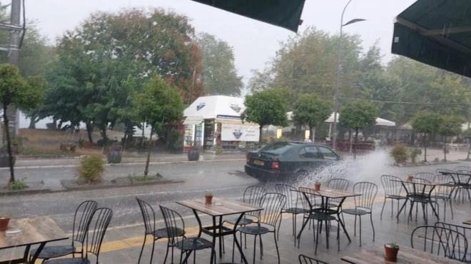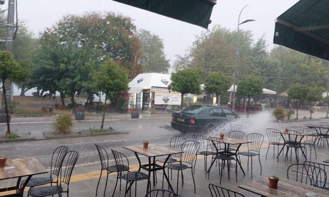 Μέσα σε λίγα λεπτά οι ουρανοί άνοιξαν, με έντονη βροχόπτωση που συνοδεύτηκε από δυνατούς ανέμους, προκαλώντας προβλήματα σε δρόμους και γειτονιές.