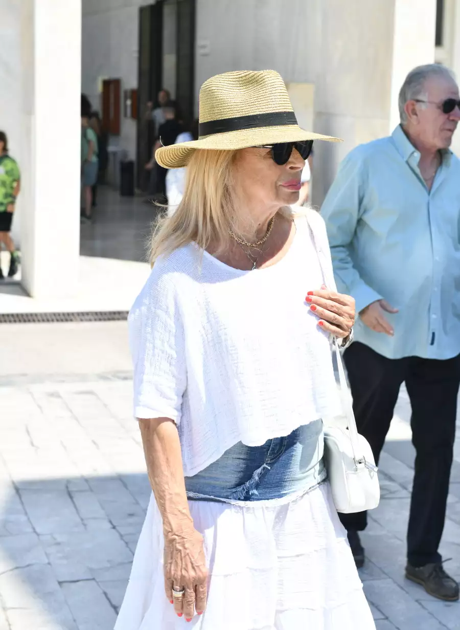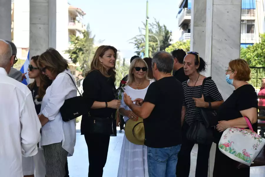 Η κυρία Γκερέκου έφτασε στον τόπο της τελετής λίγο πριν τις 11:30 το πρωί, φορώντας στα μαύρα και κρατώντας ένα κόκκινο τριαντάφυλλο.