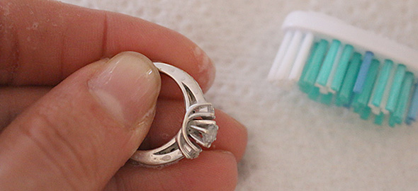 Βουτήξτε την οδοντόβουρτσα σε λίγο χυμό λεμονιού και τρίψτε ελαφρά το αγαπημένο σας κόσμημα. Ξεπλύνετε με νερό και αφήστε το να στεγνώσει.