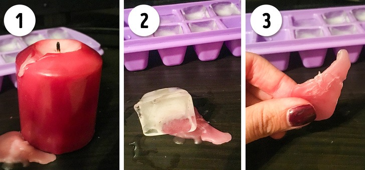Αν έχει πέσει λιωμένο κερί σε κάποιο έπιπλο, απλά τρίψτε ελαφρά με ένα παγάκι το σημείο και αφαιρέστε.