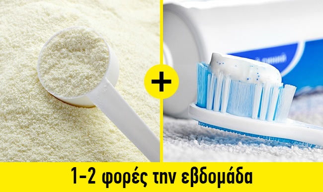 Βουρτσίστε τα δόντια σας με οδοντόκρεμα και γάλα σε σκόνη. Θα εκπλαγείται από τα αποτελέσματα, όταν βουρτσίσετε, τα δόντια σας.