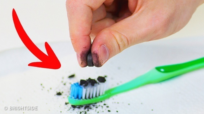 Προσπαθήστε να μετατρέψετε ένα δισκίο άνθρακα σε σκόνη. Έπειτα, βουτήξτε την οδοντόβουρτσά σας στη σκόνη για να βουρτσίσετε τα δόντια σας.
