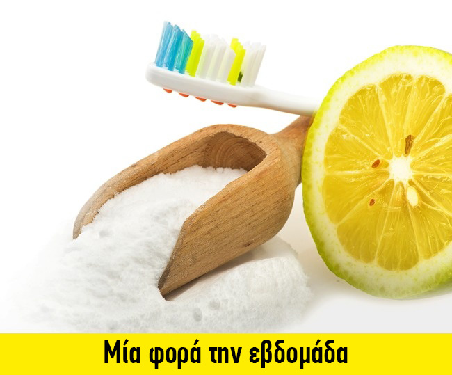 Βουρτσίστε μία φορά ανά εβδομάδα τα δόντια σας, με μαγειρική σόδα και χυμό λεμονιού.