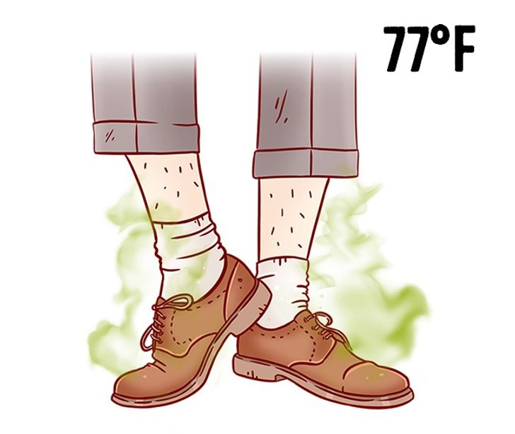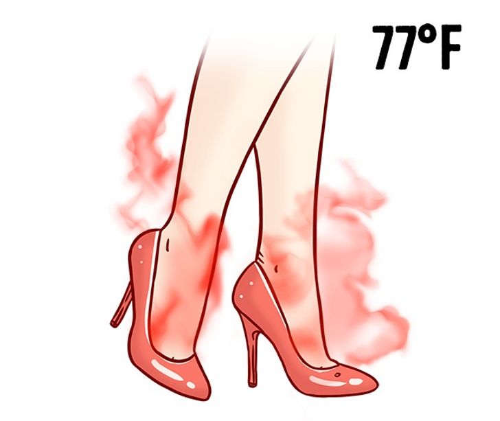 Τους καλοκαιρινούς μήνες, συνιστάται ιδιαίτερα να φοράτε παπούτσια από φυσικά υλικά, όπως δέρμα ή υφάσματα. Το να φοράτε παπούτσια από δερματίνη σε ζεστό καιρό μπορεί να είναι επικίνδυνο για την υγεία σας, καθώς οι υψηλές θερμοκρασίες προκαλούν την αλληλεπίδραση των διαφόρων χημικών συστατικών με το δέρμα. Εκτός αυτού, τέτοια παπούτσια έχουν χαμηλό αερισμό ποδιών, που μπορεί να οδηγήσει σε μυκητιάσεις, σκασίματα και άλλες επιπλοκές.