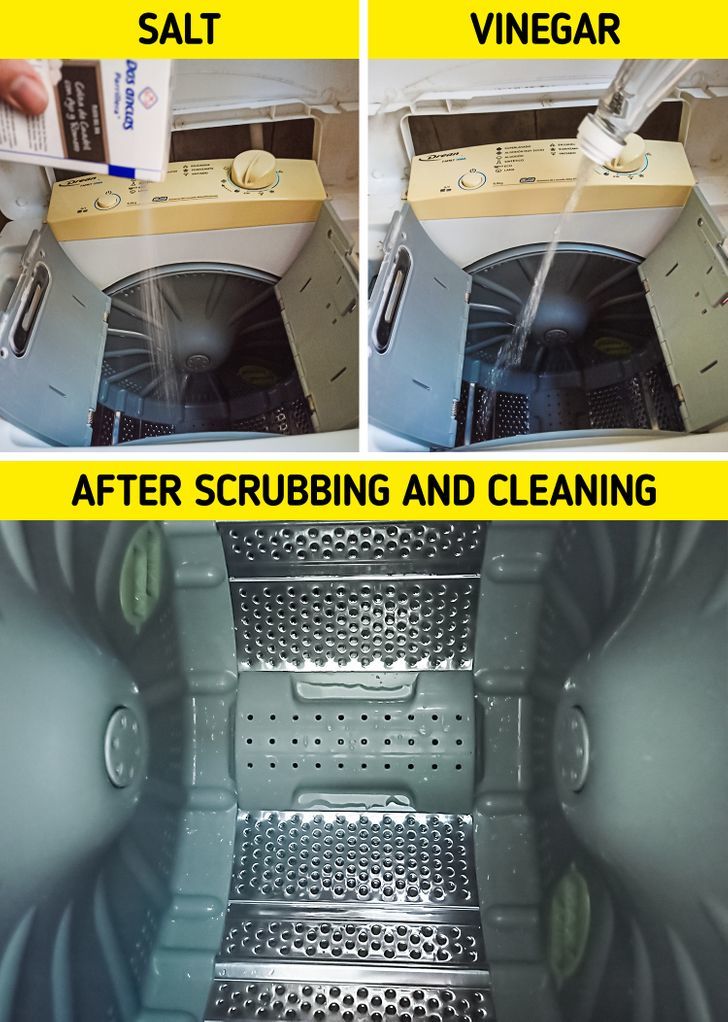 – Καθαρίστε το πλυντήριο σας: Ρίξτε λίγο αλάτι και λίγο ξύδι στο πλυντήριο σας. Στη συνέχεια, πάρτε μια βούρτσα και τρίψτε ολόκληρο τον κάδο Το τρίψιμο με αυτά τα συστατικά θα δημιουργήσει ένα είδος πάστας. Στη συνέχεια, μπορείτε να ρίξετε λίγο νερό για να αφαιρέσετε την υπόλοιπη πάστα. Όταν τελειώσετε, στεγνώστε και θα δείτε ότι όλα είναι λαμπερά. Μπορείτε να επαναλάβετε τη διαδικασία όσο θέλετε ή χρειάζεστε, έως ότου το μηχάνημά σας να φαίνεται ολοκαίνουργιο.