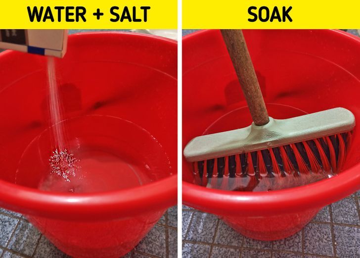 – Κάντε τις σκούπες σας να διαρκούν περισσότερο: Η σκούπα σας είναι ήδη παλιά και πρέπει να την αλλάξετε; Λοιπόν, όταν αγοράσετε μια καινούργια, κάντε το ακόλουθο τέχνασμα πριν την χρησιμοποιήσετε για πρώτη φορά. Ετοιμάστε ένα διάλυμα αλατισμένου νερού σε έναν κουβά και βουτήξτε τις τρίχες για λίγα λεπτά. Αυτό θα παρατείνει τη διάρκεια ζωής μιας από τις πιο σημαντικές συσκευές καθαρισμού στο σπίτι σας. Λάβετε υπόψη ότι αυτό λειτουργεί κυρίως για παλιομοδίτικες σκούπες από άχυρο.