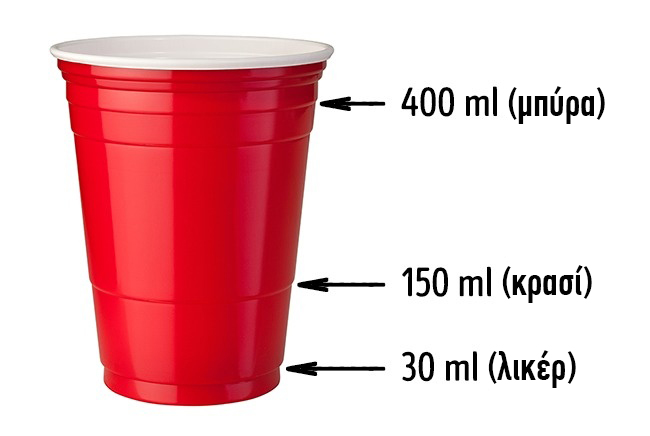Ένα πλαστικό ποτήρι μιας χρήσης, μπορεί να χρησιμοποιηθεί ως δοχείο μέτρησης. Οι γραμμές που έχουν τα συγκεκριμένα ποτήρια, δεν γίνονται για χάρη του σχεδιασμού αλλά για τον προσδιορισμό διαφορετικών ποσοτήτων υγρών.