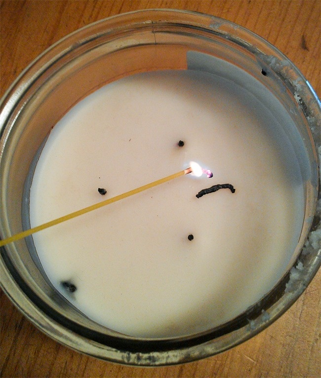 Αν δεν έχετε μακριά σπίρτα και πρέπει να ανάψετε ένα κερί μέσα στη θήκη του, ανάψτε την άκρη από ένα μακαρόνι και χρησιμοποιήστε το αντί για σπίρτο.