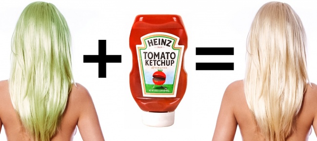 Αν μετά από μια κακή βαφή, τα μαλλιά σας δείχνουν πράσινα, δεν χρειάζεται να ξοδέψετε πολλά χρήματα για να διορθώσετε το ατύχημα. Υπάρχει μια καλή λύση χαμηλού κόστους: κάντε μια μάσκα μαλλιών από κέτσαπ, ακριβώς όπως έκανε η ηθοποιός Σιένα Μίλερ. Πάρτε μερικές κουταλιές της σούπας κέτσαπ, απλώστε τες στα μαλλιά σας, τυλίξτε τα με πλαστικό περιτύλιγμα και αφήστε τα για 30 λεπτά. Επαναλάβετε κάθε μέρα, ώσπου τα μαλλιά σας να αποκτήσουν τον επιθυμητό τόνο.
