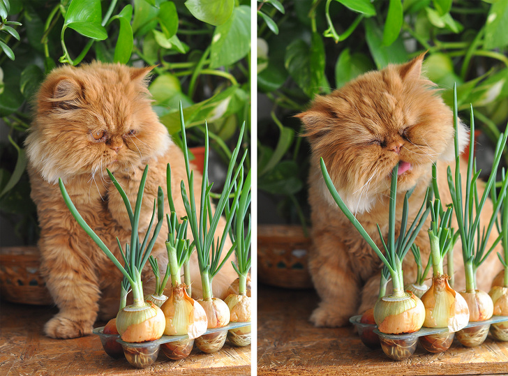 Ακόμη και μια μικρή ποσότητα αυτών των τροφών μπορεί να είναι πολύ επικίνδυνη για τις γάτες. Τρώγοντας κρεμμύδια, σκόρδο και φρέσκο κρεμμυδάκι τα κάνει να αναπτύσσουν αιμολυτική αναιμία και τα ερυθρά αιμοσφαίρια τους γίνονται ευάλωτα. Σε αυτή την περίπτωση, οι γάτες θα αισθανθούν αϋπνία, κοιλιακό πόνο και θα έχουν αποχρωματιστούν τα ούρα τους.