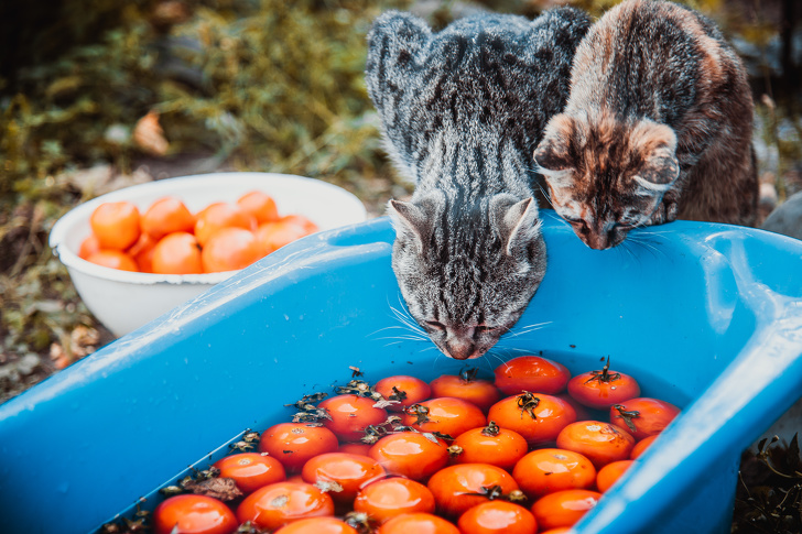 Οι μη ώριμες ντομάτες όπως και τα φύλλα και οι μίσχοι τους έχουν μια ουσία που ονομάζεται ντοματίνη που είναι πολύ τοξική για τις γάτες. Η κατάποση αυτής της ουσίας μπορεί να οδηγήσει σε εμετό, διασταλμένες κόρες, απώλεια όρεξης και πολλά άλλα συμπτώματα.