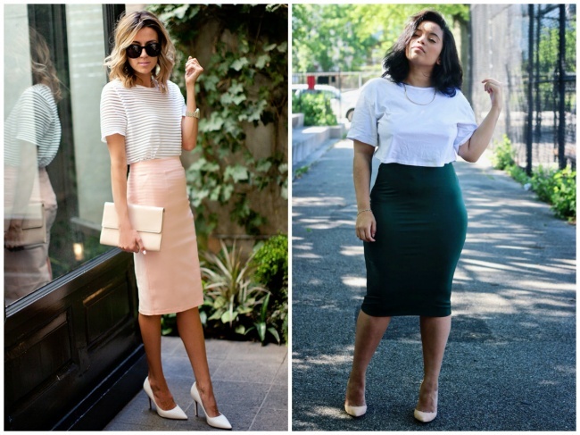 4. Pencil φούστα: Το τεράστιο αυτό δώρο που μας κληροδότησε η βιομηχανία της μόδας, οι pencil φούστες, κολακεύουν τους πάντες και ταιριάζουν σχεδόν με κάθε μπλούζα. Αν θέλετε να τονίσετε γλουτούς και πόδια, επιλέξτε μια στενή pencil φούστα από χοντρό ύφασμα. Αν προτιμάτε να τα απομακρύνετε τα βλέμματα από την περιφέρειά σας, επιλέξτε μια πιο ίσια και λιγότερο εφαρμοστή. Αν θέλετε να δείχνετε ψηλότερη, τότε φροντίστε το μήκος της φούστας να φτάνει μέχρι κάτω απ’ το γόνατό σας.
