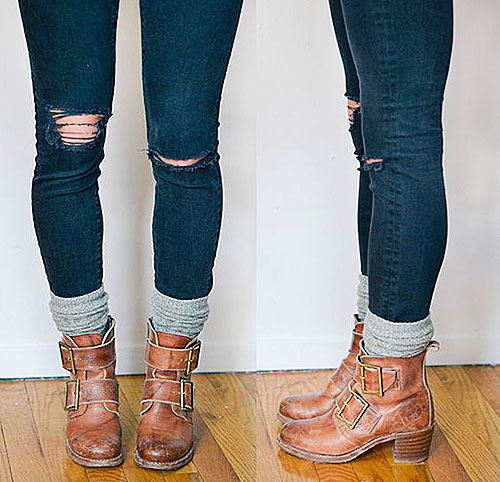 3. Με τζιν και κάλτσες: Για πολύ στενό παντελόνι, συνδυάστε το, με κάλτσες, που θα σπρώξετε προς τα κάτω, ώστε να σχηματίσουν σούρες.
