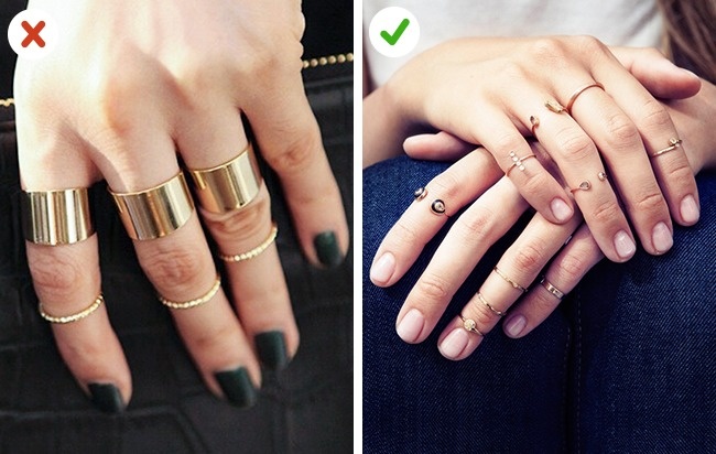 Τα μεγάλα δαχτυλίδια δεν πάνε σε κοντά δάχτυλα, ενώ τα μικρά τα κάνουν να φαίνονται πιο μακριά και λεπτά.