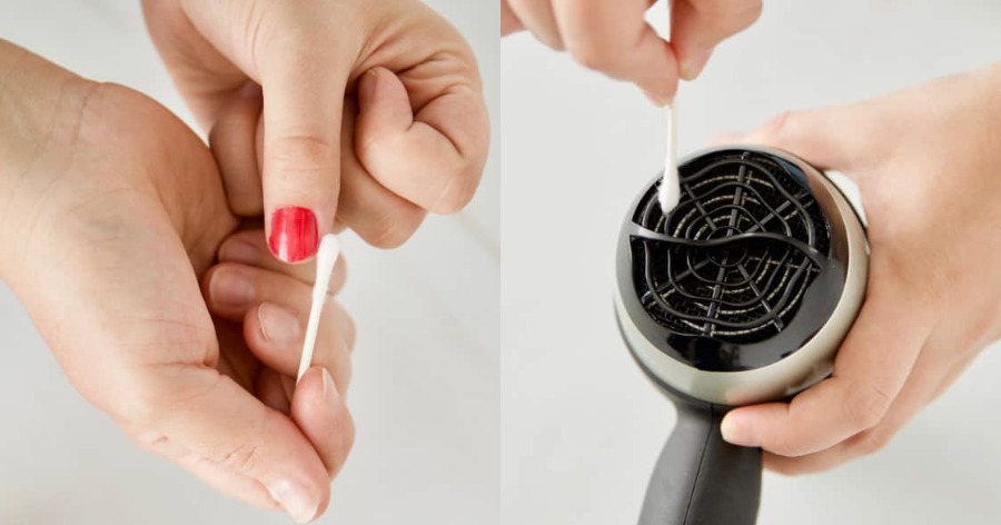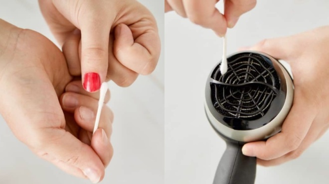 Το πιστολάκι μαλλιών συσσωρεύει αρκετό χνούδι που μπορείτε εύκολα να καθαρίσετε με μερικές μπατονέτες. Το χνούδι καλό είναι να μην μένει για καιρό πάνω στο πιστολάκι σας γιατί υπάρχει πάντα κίνδυνος ανάφλεξης.