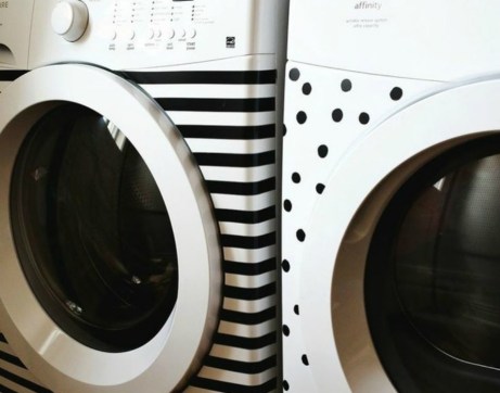 Μπορεί το πλυντήριο να μην είναι εύκολο να κρυφτεί αλλά μπορείτε να το κάνετε πιο ενδιαφέρον οπτικά. Η μια λύση είναι να βάλετε ξύλινες πλάκες γύρω γύρω δημιουργώντας ένα αυτοσχέδιο ντουλάπι. Η άλλη λύση είναι να χρησιμοποιήσετε αυτοκόλλητα με σχέδια για να το κάνετε στιλιστικά πιο όμορφο.