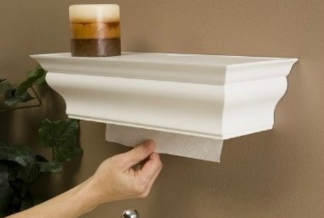 Βάζοντας ένα όμορφο ραφάκι πάνω από το χαρτί κουζίνας ή το χαρτί υγείας, μπορείτε εύκολα να κρύψετε τα ρολά εκεί. Φτιάξτε ένα κλειστό ραφάκι και τοποθετήστε στο εσωτερικό το χαρτί. Μπορείτε να διακοσμήσετε το ραφάκι βάζοντας όμορφα κεράκια ή βαζάκια με λουλούδια.