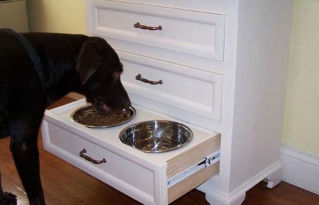 Αν δεν σας αρέσει να έχετε στο πάτωμα τα μπολ του σκύλου σας, μπορείτε να χρησιμοποιήσετε το τελευταίο συρτάρι μιας από τις συρταριέρες σας. Έτσι θα γλιτώσετε από την αντιαισθητικότητα αυτών των μπολ τα οποία συνήθως μπερδεύονται στα πόδια σας. Βάλτε μια συρταριέρα στο χολ ή στο σαλόνι και στο πιο χαμηλό συρτάρι τοποθετήστε ένα μπολ για τροφή και ένα για νερό.