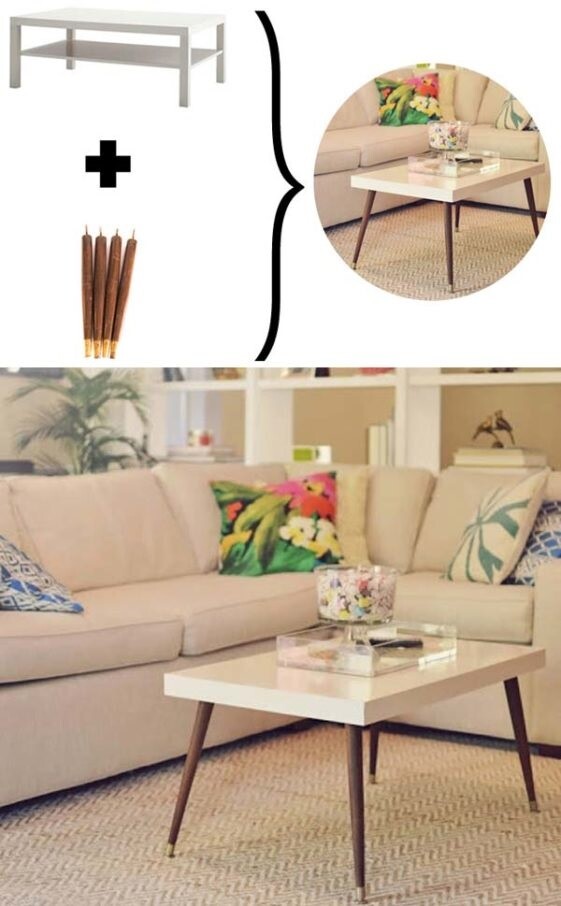 Αφαιρέστε τα πόδια από ένα τραπεζάκι Lack και βιδώστε κωνικά πόδια.