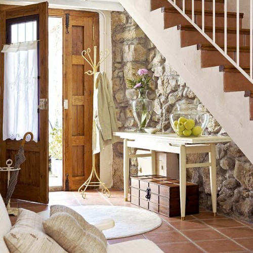 – Μπορείτε να ομορφύνετε την είσοδο σας τοποθετώντας ένα τραπέζι με λουλούδια κάτω από τις σκάλες.