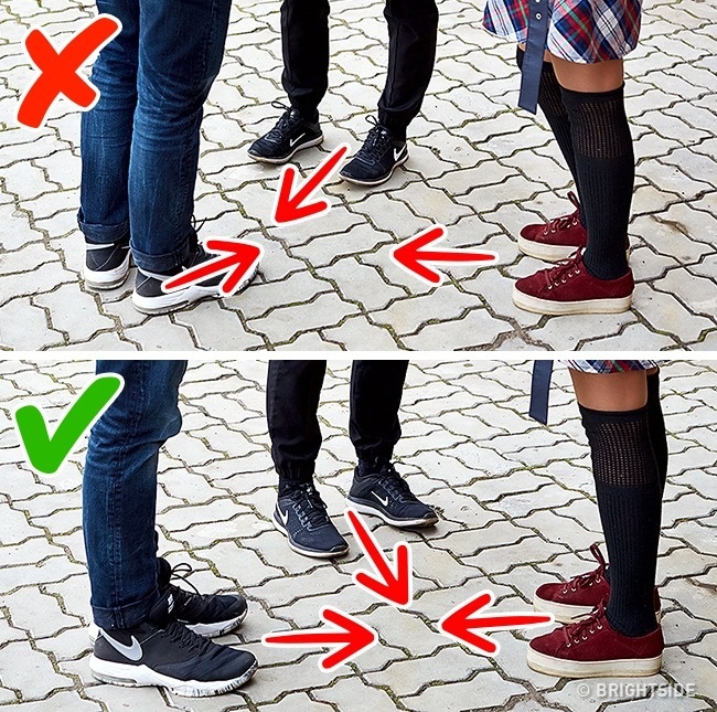 – Δώστε προσοχή στην κατεύθυνση των ποδιών των άλλων, όταν μιλάτε: Τα πόδια των ανθρώπων μπορούν να αποκαλύψουν τα πραγματικά τους συναισθήματα. Αν μιλάτε με κάποιον και το σώμα του είναι στραμμένο προς εσάς, αλλά τα πόδια του όχι, τότε δεν σας συμπαθεί πολύ. Επίσης, αν οι μύτες των ποδιών του δείχνουν προς την αντίθετη κατεύθυνση, θέλει να φύγει όσο το δυνατόν συντομότερα.
