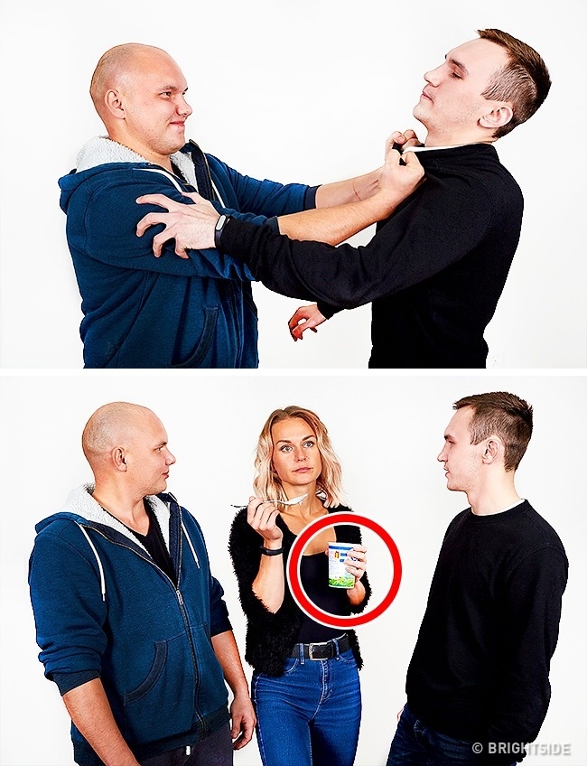 – Αν θέλετε να σταματήσετε έναν καυγά, πάρτε κάτι να φάτε και σταθείτε ανάμεσα σε αυτούς που τσακώνονται: Αυτό το φαινόμενο ονομάζεται “επίδραση του σνακ.” Το φαγητό είναι συνδεδεμένο με την ηρεμία και την χαλάρωση. Οι πιθανότητες να επιτεθεί κάποιος σε έναν άνθρωπο που τρώει είναι πολύ μικρές, οπότε ο τσακωμός θα τελειώσει πολύ γρήγορα.