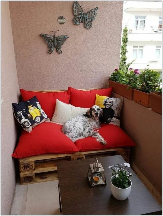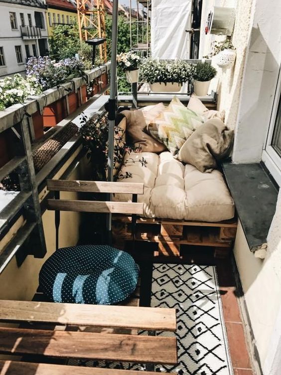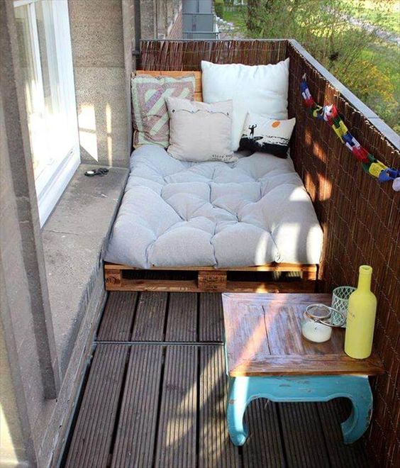 Να, δυο κομμένες παλέτες, οι οποίες έχουν κοπεί στο πλάτος του μπαλκονιού σου, μπορούν να σου δημιουργήσουν ένα τέλειο καναπεδάκι.