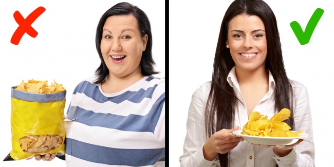 7. Μην τρώτε ποτέ σνακ από τη συσκευασία τους. Αντίθετα, βάλτε το σε ένα μικρό πιάτο για να μην οδηγηθείτε στην υπερκατανάλωση.