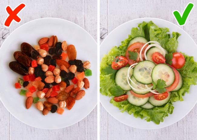 9. Επιλέξτε μεγάλα γεύματα (σ.σ. σαλάτες) για να νιώσετε πλήρεις.
