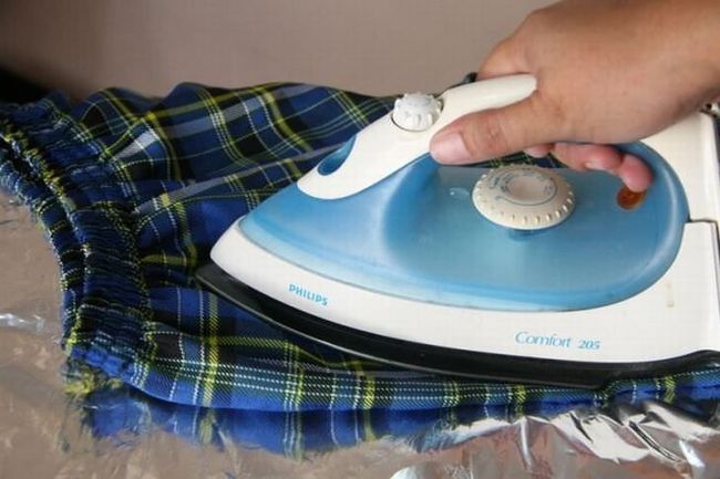 Βάλτε ένα κομμάτι αλουμινόχαρτο κάτω από τα ρούχα σας ενώ σιδερώνετε. Έτσι, θα σιδερώνετε ταυτόχρονα και τις δύο πλευρές.