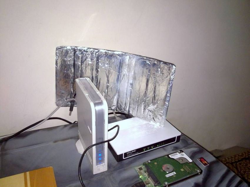 Χρησιμοποιήστε λίγο αλoυμινόχαρτο όπως στην εικόνα για να δυναμώσετε το σήμα του WiFi.