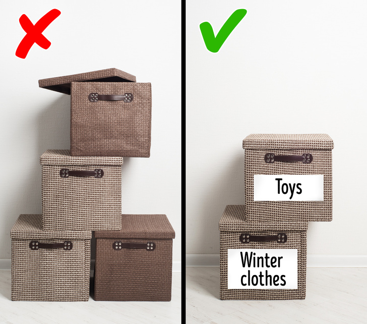 Ενώ είναι βολικά, η υπερβολή δεν κάνει καλό. Αποθηκεύστε εκεί μόνο μερικά πράγματα που δεν χρησιμοποιείτε συχνά και βάλτε ταμπέλες στα κουτιά για να ξέρετε τι έχουν.