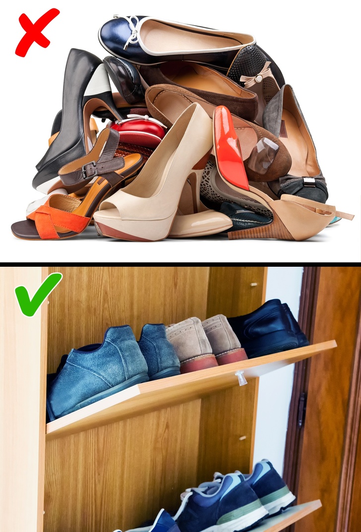 Υπάρχουν μικρές παπουτσοθήκες για να τα αποθηκεύετε κάθετα. Το μόνο πρόβλημα είναι ο εξαερισμός και η δυσοσμία, κάτι που μπορεί να λυθεί με φακελάκια λεβάντας.