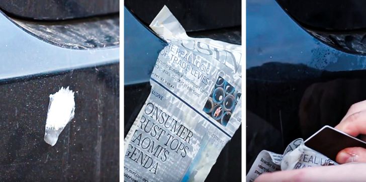 Τα σημάδια αυτοκόλλητων από τους προφυλακτήρες είναι μια πραγματικότητα που έχουμε αντιμετωπίσει όλοι. Είναι ιδιαίτερα ενοχλητικά στην εμφάνιση του αυτοκινήτου. Ένας γρήγορος, φθηνός και εύκολος τρόπος απομάκρυνσής τους είναι να βρέξετε μια εφημερίδα με ζεστό νερό και να την εφαρμόσετε στην υγρή περιοχή και στη συνέχεια να την αφήσετε να μουλιάσει μέχρι να κολλήσει στο αυτοκίνητο.