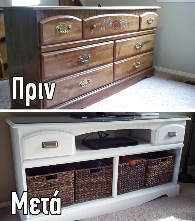 – Μετατρέψτε μια συρταριέρα σε έπιπλο τηλεόρασης: Μπορείτε εύκολα να μετατρέψετε εντελώς τα έπιπλά σας και να τα κάνετε αγνώριστα, αλλάζοντας ταυτόχρονα τον σκοπό λειτουργίας τους. Ακούγεται απίστευτο;