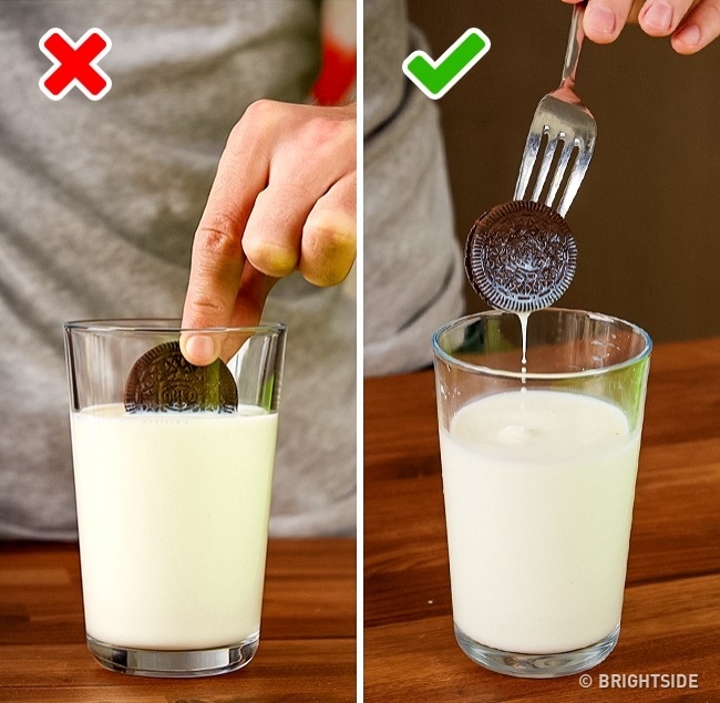 Μπόνους: Για να βουτήξετε ένα ολόκληρο μπισκότο στο γάλα χωρίς να λερώσετε τα δάχτυλα σας, χρησιμοποιήστε ένα πιρούνι.