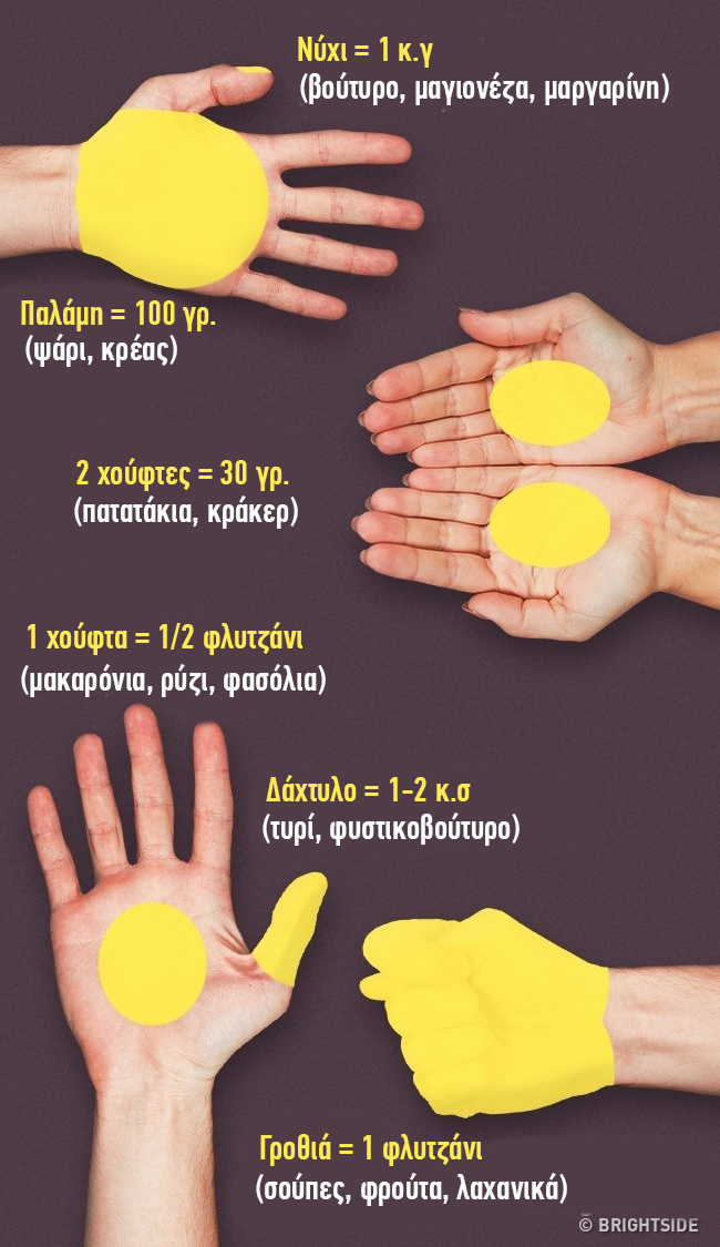 Καθορίστε το μέγεθος της μερίδας με το χέρι σας.