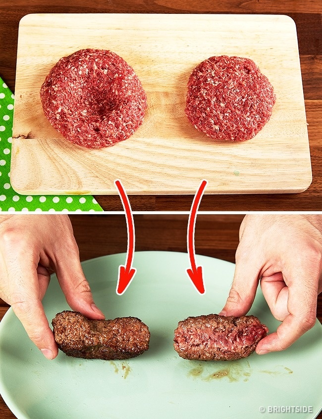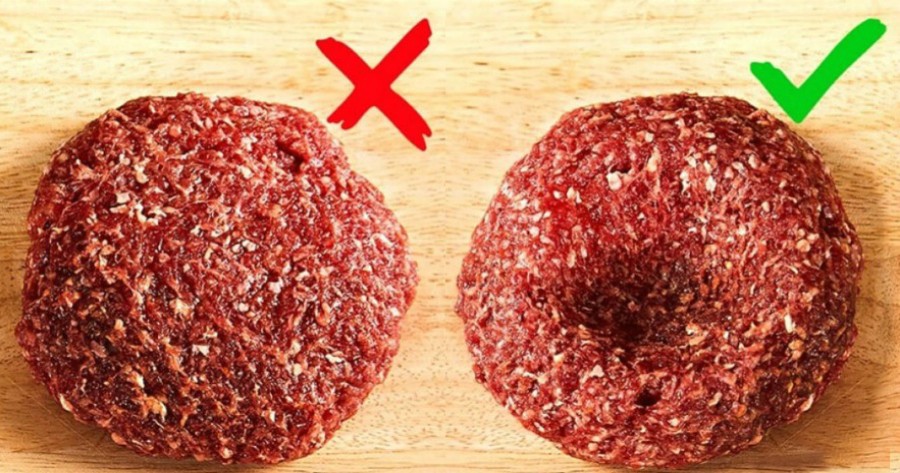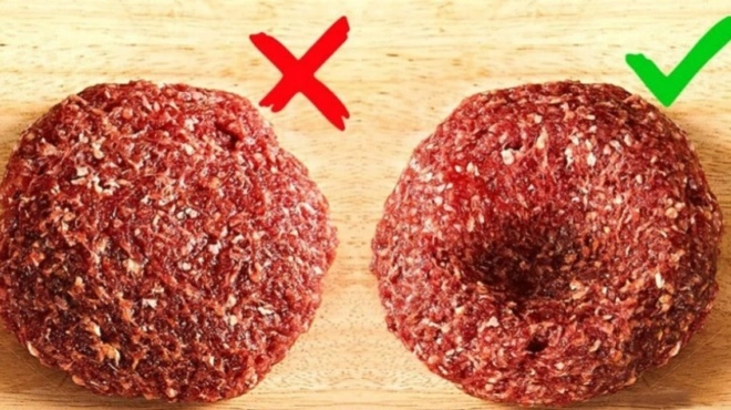 Εάν πρόκειται να ψήσετε μπιφτέκια για μπέργκερ, κάνετε μια λακούβα στο κέντρο. Αυτό θα μειώσει το χρόνο μαγειρέματος.