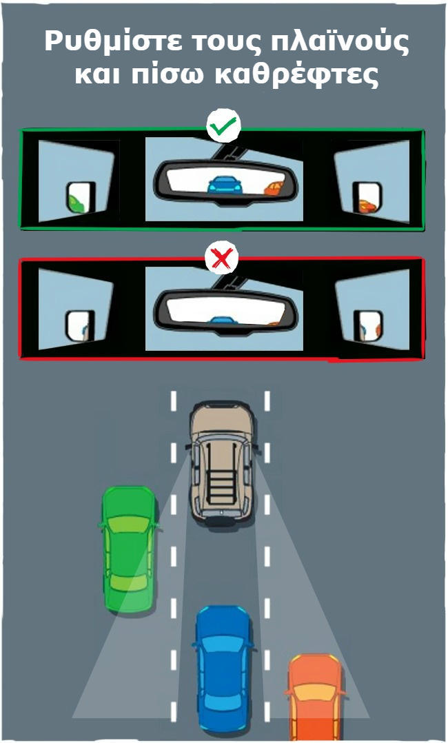 Βασικοί κανόνες ασφαλείας: Εξαλείψτε τα «τυφλά σημεία» στο αυτοκίνητό σας, ρυθμίζοντας κατάλληλα τους καθρέφτες