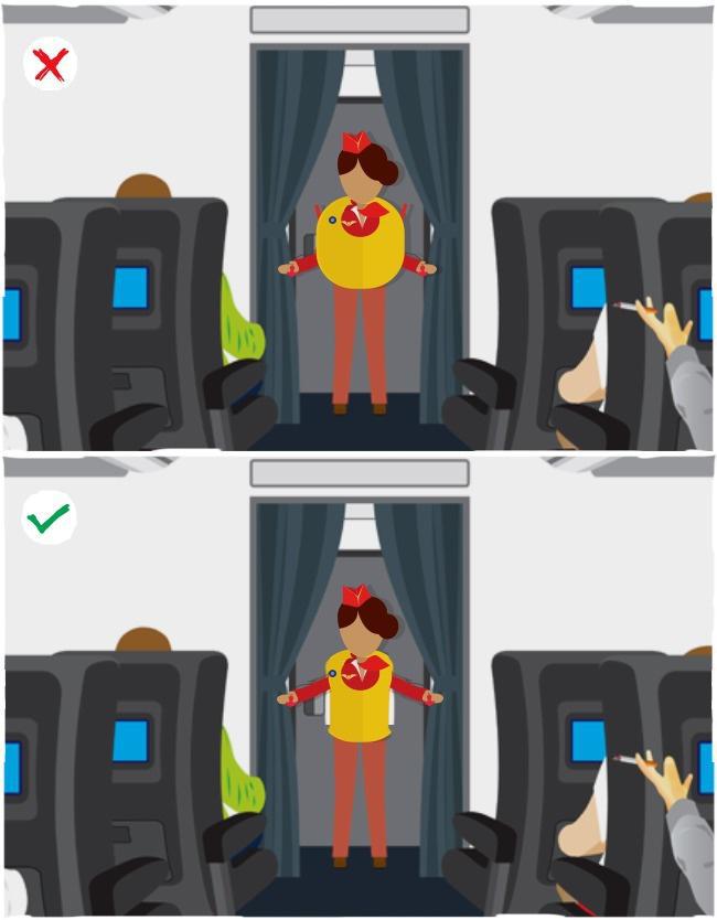 Βασικοί κανόνες ασφαλείας: Μη φουσκώσετε το σωσίβιο πριν την έξοδο από το αεροσκάφος