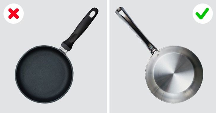 Έχετε παρατηρήσει ποτέ ότι είναι πολύ δύσκολο να μαγειρέψετε κάτι με τραγανή κρούστα σε αντικολλητικό τηγάνι; Ο λόγος είναι η αντικολλητική επίστρωση. Χρησιμοποιήστε αυτόν τον τύπο τηγανιού μόνο για το τηγάνισμα αυγών και pancakes. Αλλά αν θέλετε το κρέας ή τα ψάρια σας να έχουν χρυσή κρούστα, αγοράστε ένα νέο τηγάνι χωρίς αντικολλητική επίστρωση. Θα γευτείτε τη διαφορά.