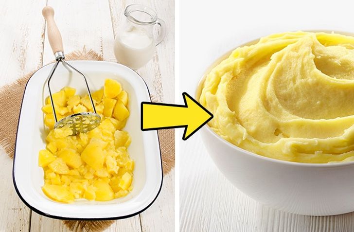 Ένα μικρό μυστικό: για να αποφύγετε το πιτσίλισμα του ζεστού γάλακτος όταν φτιάχνετε πουρέ πατάτας, θρυμματίστε μερικές από αυτές σε μια κατσαρόλα και μετά προσθέτετε το γάλα.