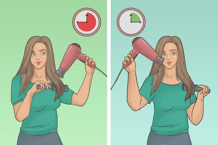 Το να κρατάτε το πιστολάκι με το κυρίαρχο χέρι σας φαίνεται πολύ φυσικό – αυτό κάνουν οι περισσότεροι. Αλλά είναι λάθος επειδή χρειάζεστε τη δύναμη και την επιδεξιότητα αυτού του χεριού για στυλιζάρετε και να χτενίσετε τα μαλλιά σας. Θα σας βοηθήσει να ελέγξετε καλύτερα τη διαδικασία, να εργαστείτε με τη χτένα πιο αποτελεσματικά και να αφιερώσετε συνολικά λιγότερη προσπάθεια.